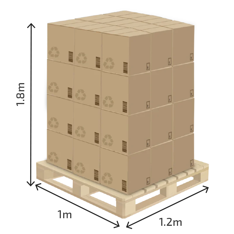 - Pallet: 1 x 1.2 x 1.8 mts; 36 cajas / pallet