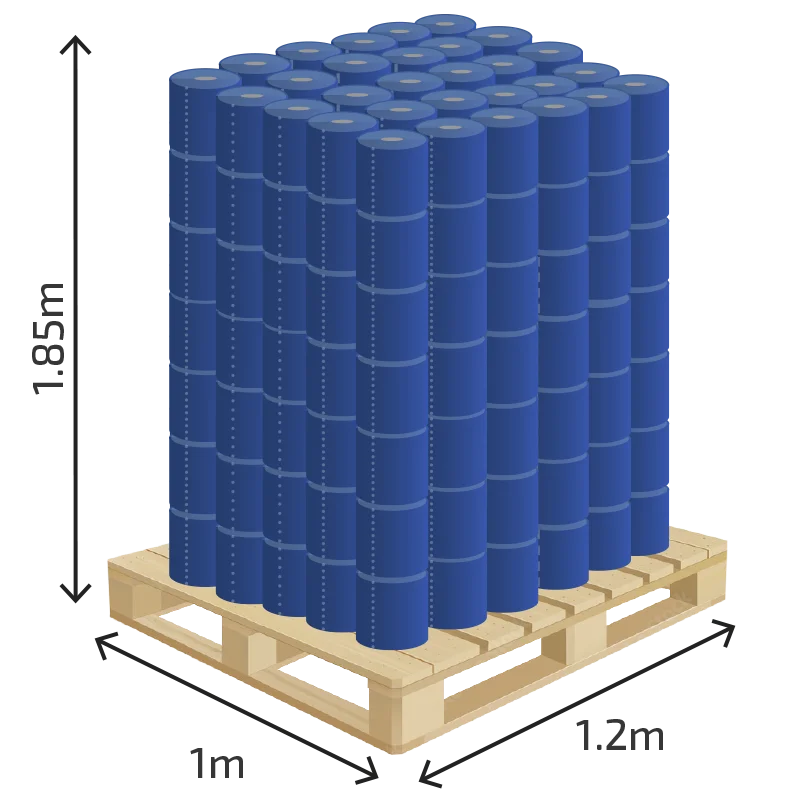 • Pallet: 1 x 1.2 x 1.85 mts; 210 rollos / pallet